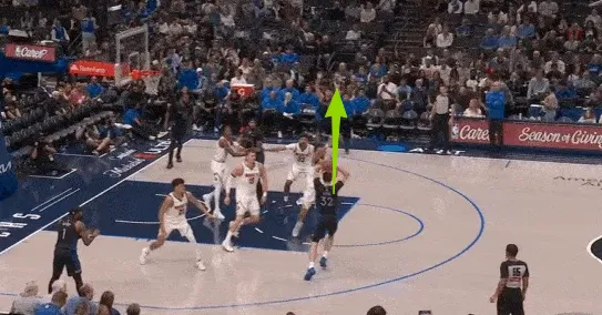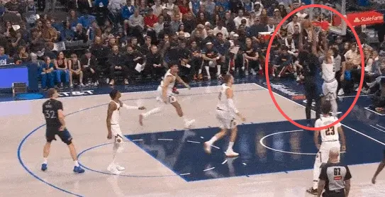 弗拉格和浓眉的挡拆发起,约基奇给平延误,弗拉格先是看向斜前方让弱侧底角的穆雷难以判断(如果回收垫防浓眉,弗拉格可以直接找到底角哈迪),