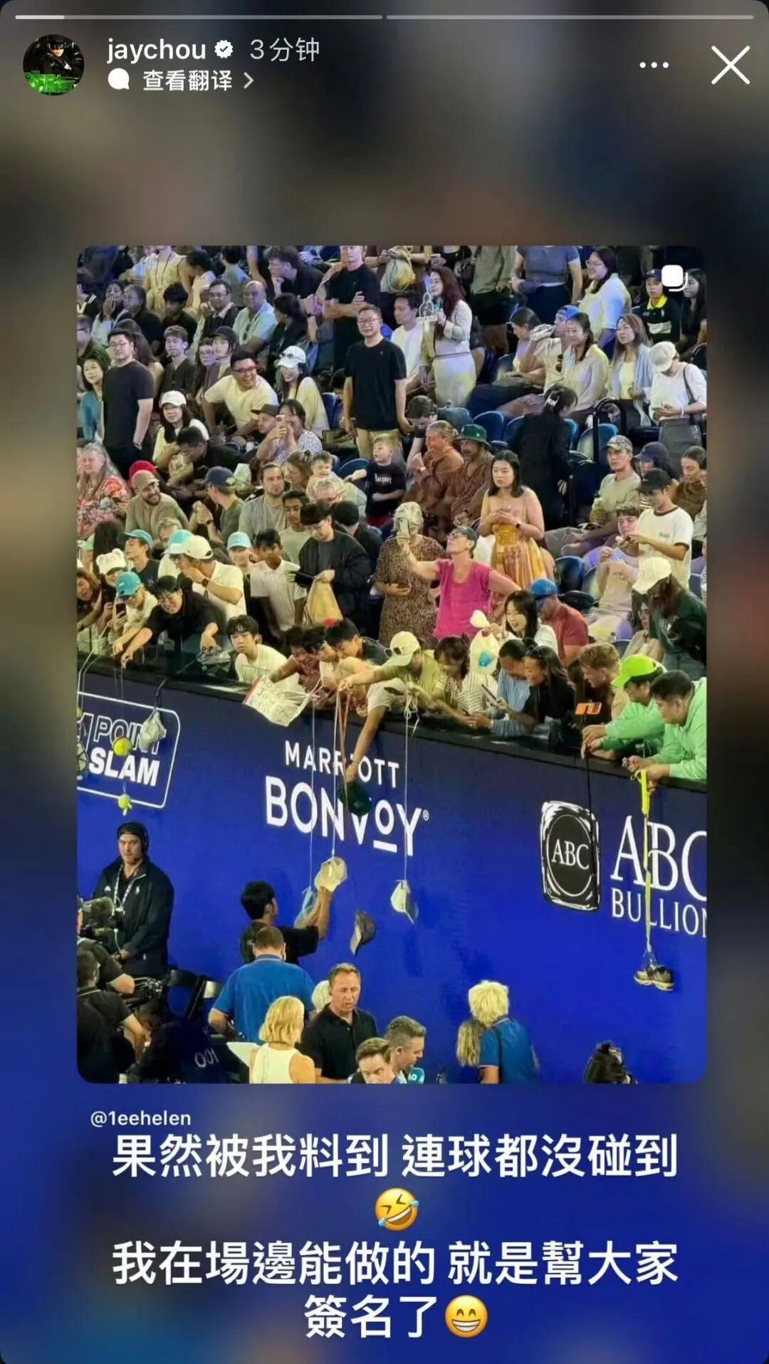 果然,尽管周杰伦酷酷地甩飞了自己的墨镜,在底线霸气站定,一颗 ACE 球直接终结了他的澳网之旅。