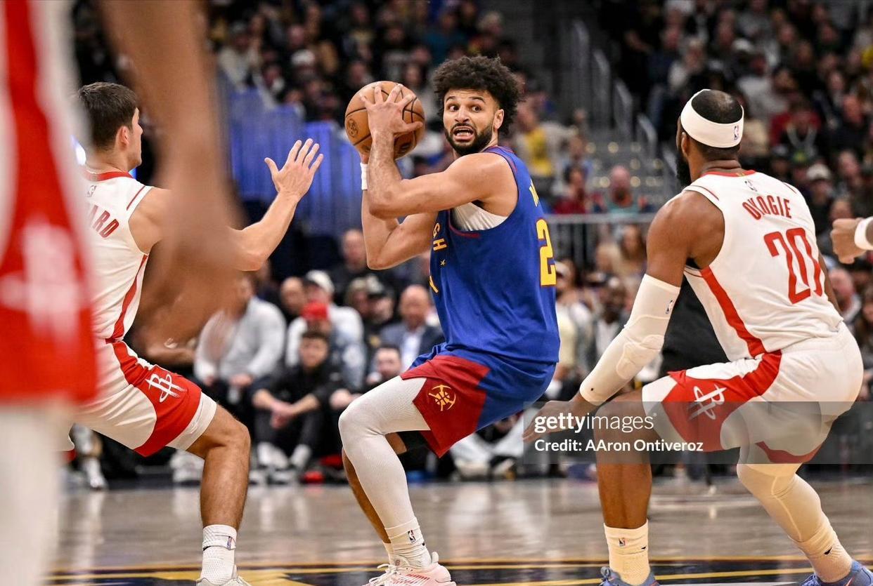 北京时间3月12日,NBA常规赛,掘金坐镇主场迎击火箭。本场比赛之前,掘金39胜26负排名西部第6,近期掘金状态一般,遭遇两连败且最近6场比赛输了4场,状态正常的掘金队,肯定是争冠热门之一,约基奇作为当世NBA第一人,正值巅峰,场均砍下大号三双,篮板助攻都是联盟第一,二当家穆雷的状态,也要比过去两年好很多,此外掘金本赛季还对阵容进行补强,引进多名优质角色球员,为的就是重回23年的巅峰,到季后赛他们很有希望取得突破。另一边的火箭队,本场比赛之前,40胜24负排名西部第三,同样被视为冠军争夺者之一。